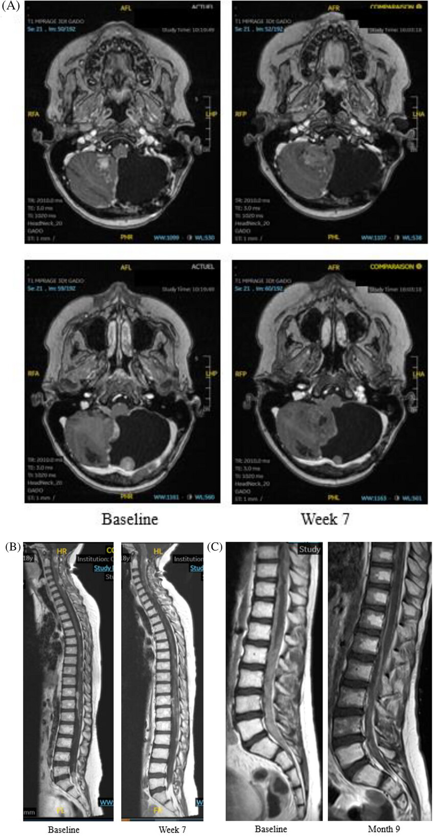 Interestingly, 3 patients with medulloblastoma experienced partial response; one patient with atypical teratoid rhabdoid tumor (ATRT) displays an ongoing stable disease (12 months); two patients with medulloblastoma had progressive disease. Grade 3–4 toxicities were observed in two patients (thrombocytopenia, anemia, diarrhea, fatigue). The axitinib–etoposide combination shows signals of efficacy in heavily pretreated patients with relapsed/refractory brain tumors. These results were based on real-world observation and will need formal evaluation in a phase I/II trial.The full text of the article is freely available here
