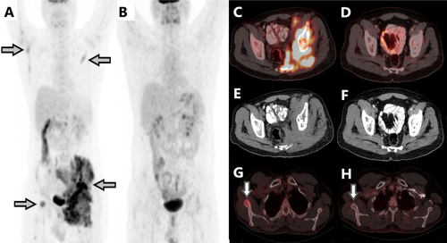 Interstingly, sequential FDG PET/CT scans over 3 years demonstrated partial metabolic response in primary and complete metabolic response (CMR) in the metastatic sites and post 3 years CMR at all sites. The high cumulative doses of Cy and Eto (over 5 g each) lead to the decision to stop the metronomic treatment and observe.